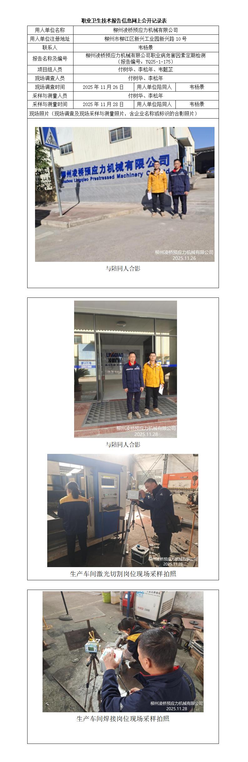 柳州凌桥预应力机械有限公司职业病危害因素定期检测 (报告编号:YQ25-1-175)