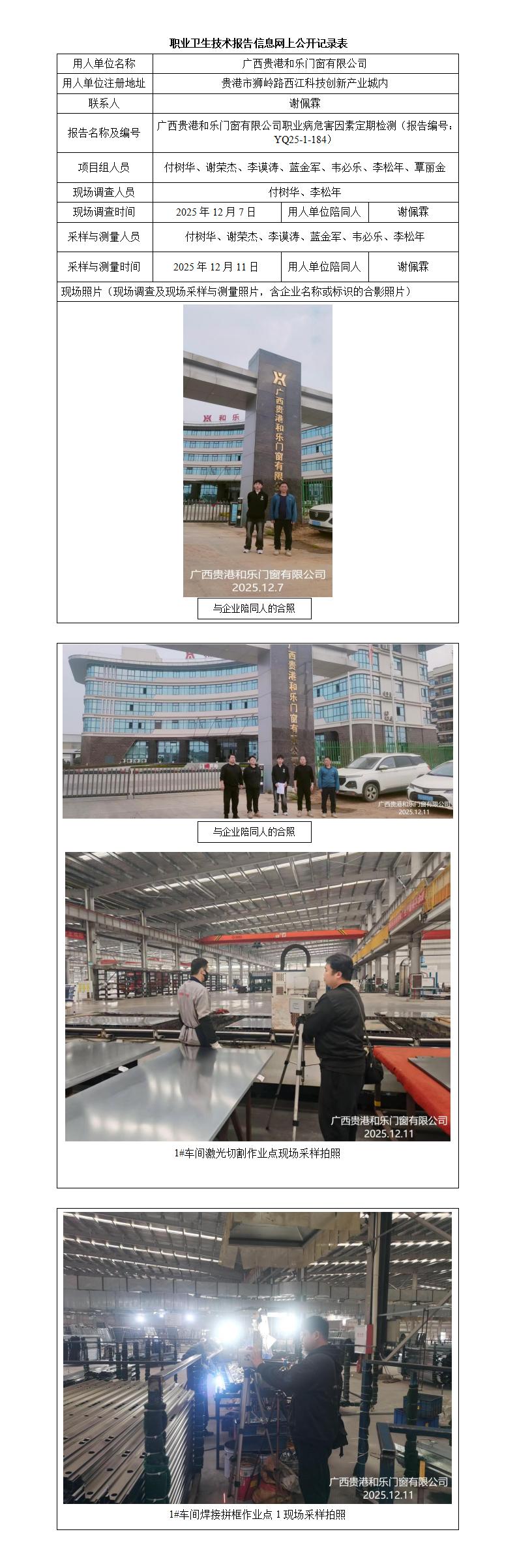 广西贵港和乐门窗有限公司职业病危害因素定期检测