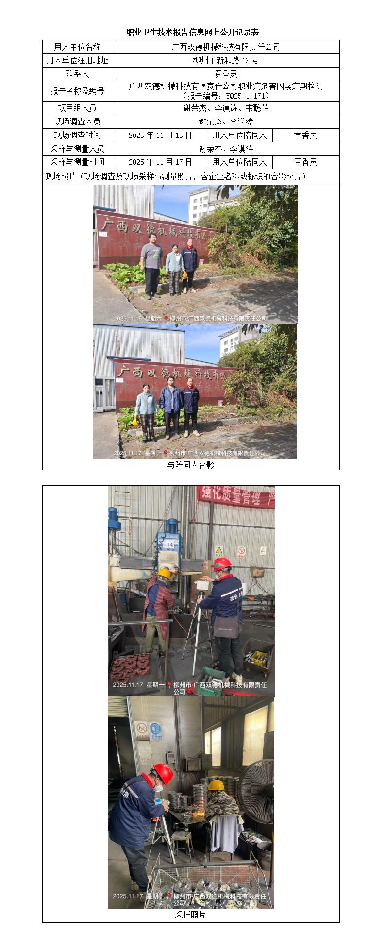 广西双德机械科技有限责任公司职业病危害因素定期检测 (报告编号:YQ25-1-171)