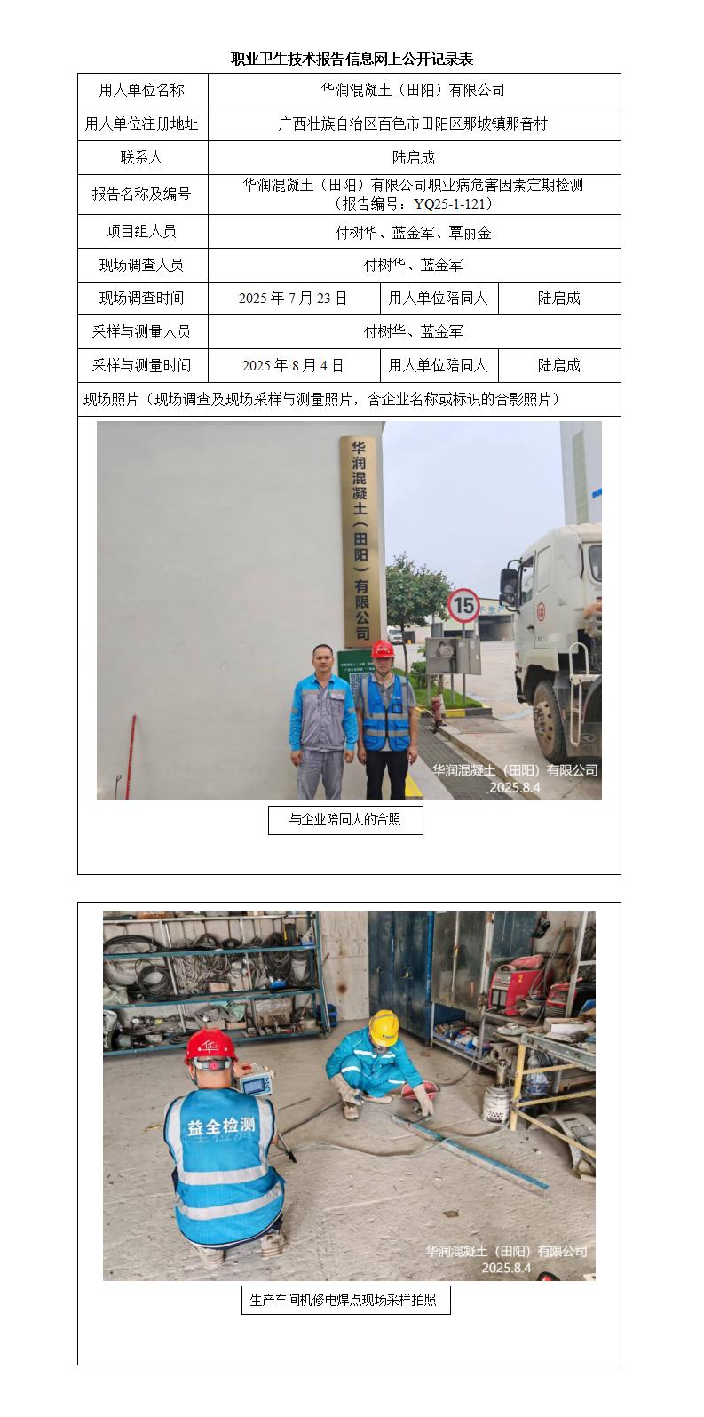 华润混凝土(田阳)有限公司职业病危害因素定期检测