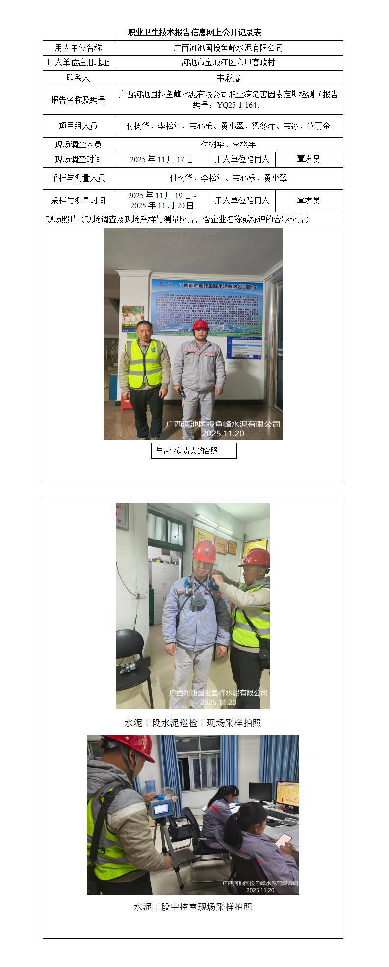 广西河池国投鱼峰水泥有限公司职业病危害因素定期检测