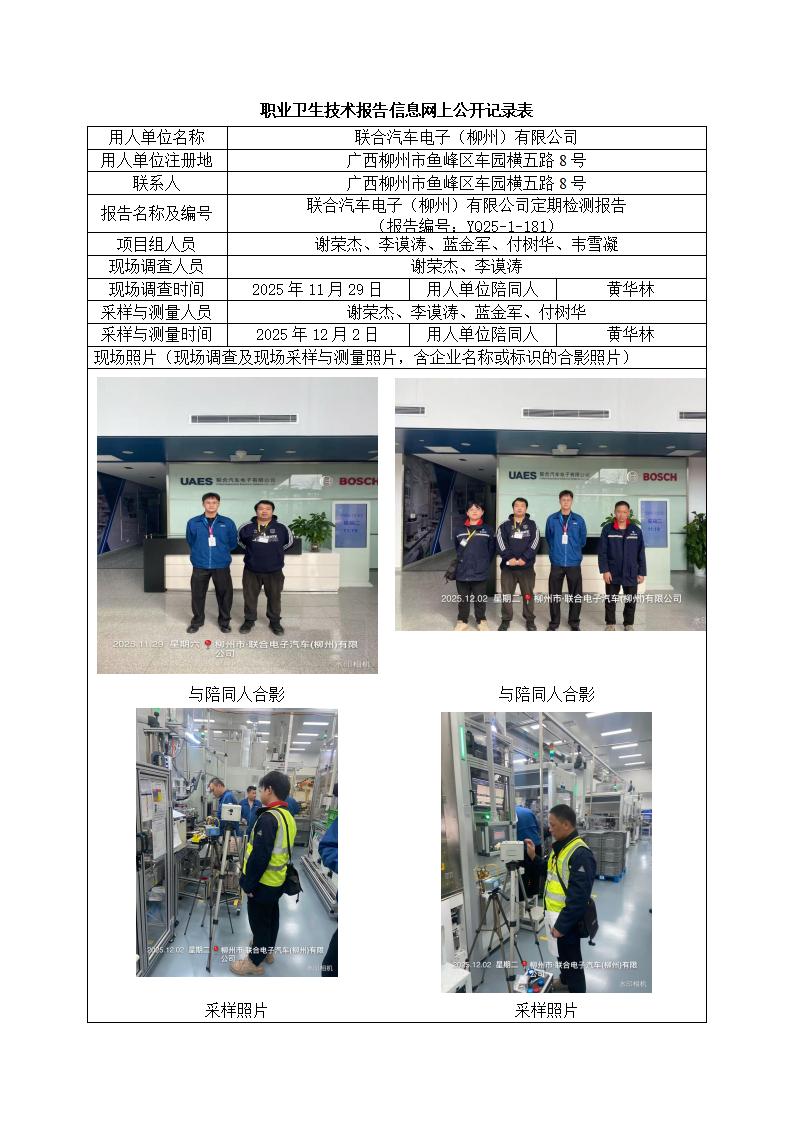 联合汽车电子(柳州)有限公司职业病危害因素定期检测信息公开