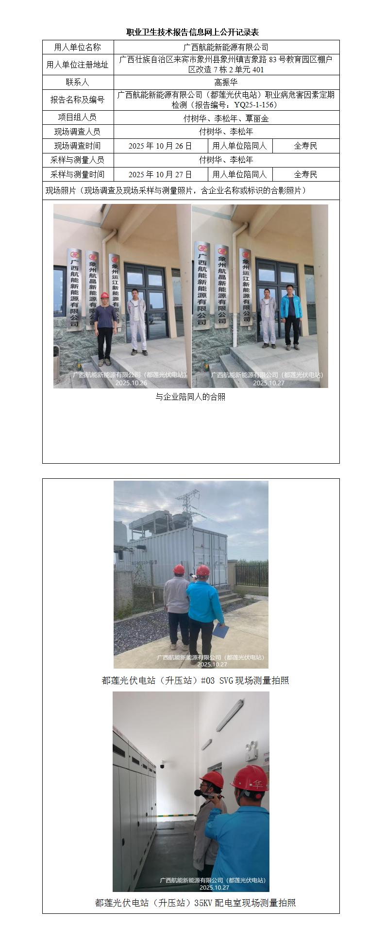 广西航能新能源有限公司(都莲光伏电站)职业病危害因素定期检测