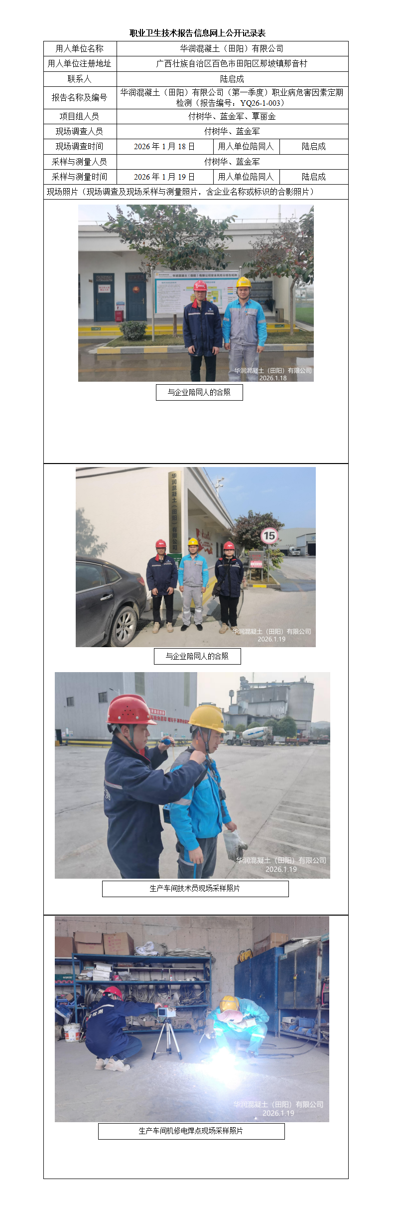 华润混凝土(田阳)有限公司(第一季度)职业病危害因素定期检测