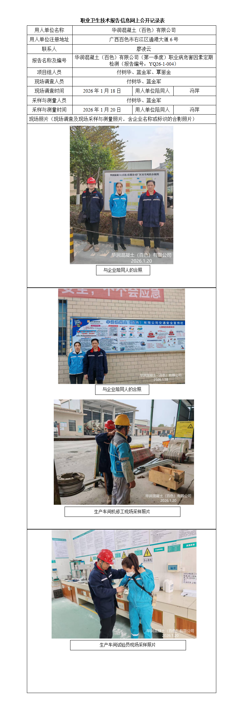 华润混凝土(百色)有限公司(第一季度)职业病危害因素定期检测