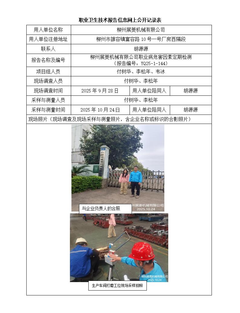 柳州展菱机械有限公司职业病危害因素定期检测
